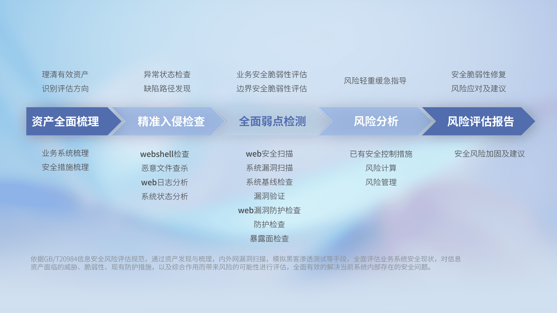针对客户行业特性,,以专业的安全服务+多厂商联合解决方案提供专属的一站式安全管理服务,,,,帮助客户全面感知网络空间威胁,,,基于识别、、检测、、分析、、、防护、、、监测、、、响应的服务理论模型,,,从方案咨询、、、集成交付、、、评估验证、、、、优化加固、、、运维运营,,致力于为客户提供完整的闭环管理式安全服务。。以实战经验为客户打造高抵御风险的安全体系,,,帮助客户发现威胁、、对抗威胁、、、、处置威胁,,,,不断积累安全对抗能力,,,,持续保障数字化安全。。。。