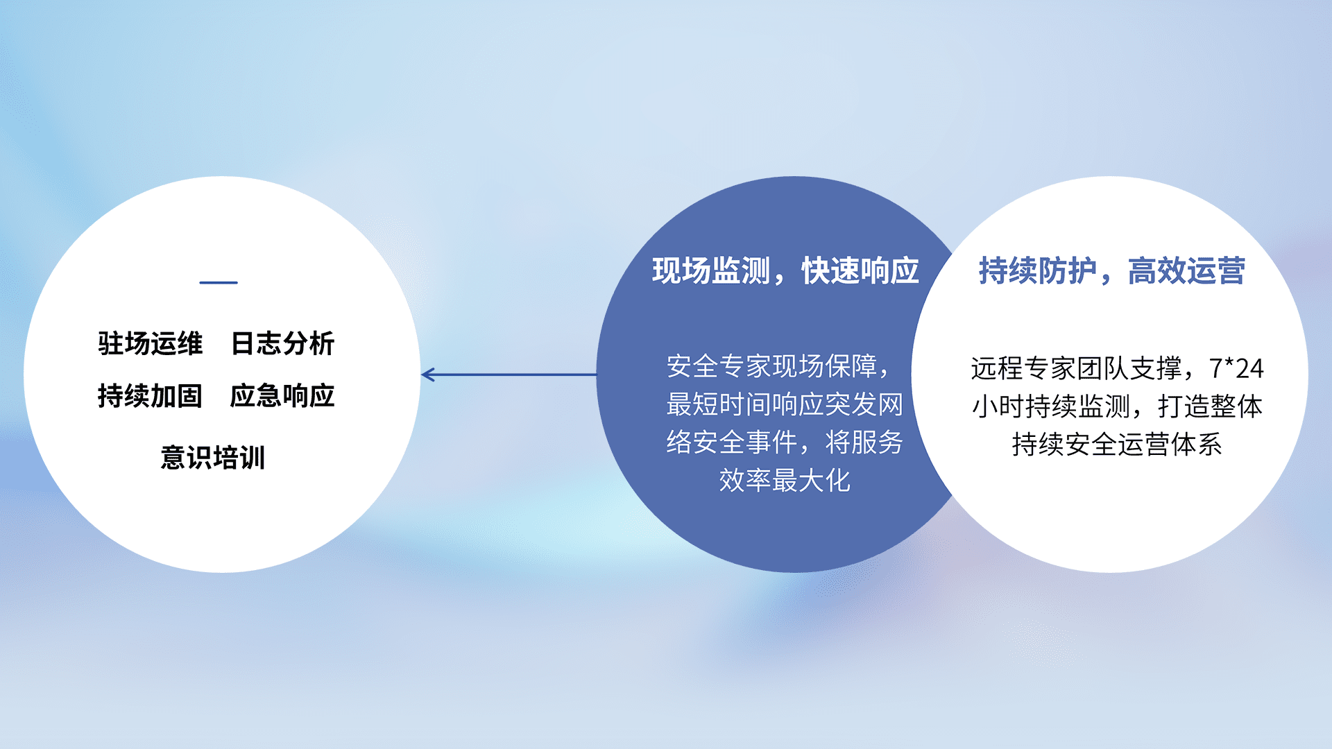 针对客户行业特性,,,,提供专属的一站式安全管理服务,,帮助客户全面感知网络空间威胁,,,通过安全专家的线上、、、线下防护支持,,,实现风险闭环,,将安全保障常态化,,,为客户打造常态化安全运维运营服务。。。